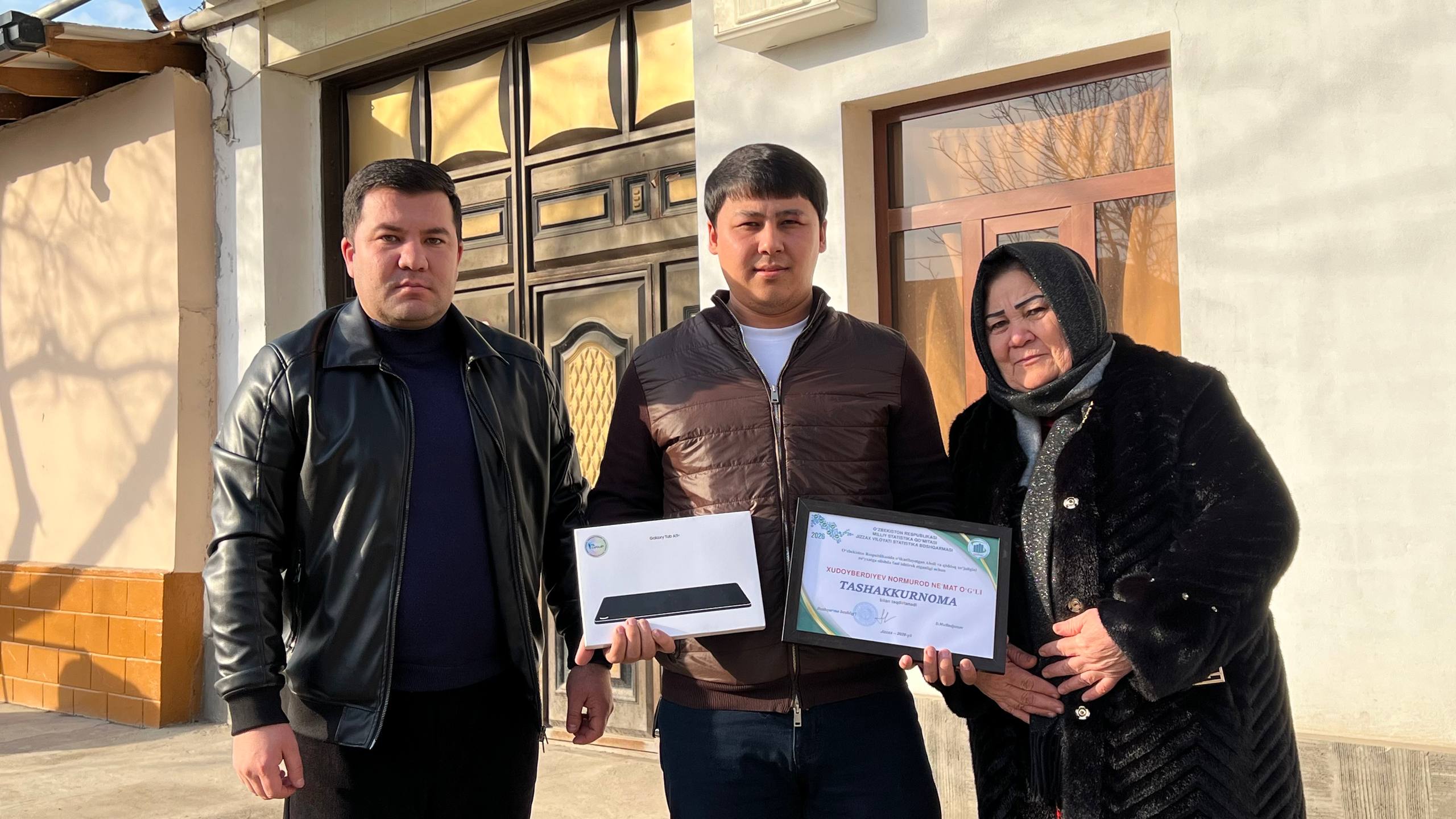 Milliy statistika qo‘mitasi tomonidan aholi va qishloq xo‘jaligini ro‘yxatga olish tadbirlari doirasida onlayn ro‘yxatdan o‘tgan fuqarolar o‘rtasida respublika bo‘ylab ilk sovrinli tanlov (random) usulida o‘tkazildi.Tanlov natijalariga ko‘ra, har bir hududdan bittadan g‘olib aniqlandi Jizzax viloyati, Sharof Rashidov tumani, Xayrobod MFY da istiqomat qiluvchi Xudoyberdiyev Normurod g‘olib sifatida tanlab olindi.G‘olibga zamonaviy planshet qurilmasi topshirildi.Bu shuni ko‘rsatadiki, onlayn ro‘yxatdan o‘tish nafaqat muhim fuqarolik burchi, balki real imkoniyatlar manbai hamdir.Savolnomani to‘g‘ri va to‘liq to‘ldirgan har bir fuqaro sovrin yutish imkoniyatiga ega.Hurmatli fuqarolar Siz ham onlayn ro‘yxatdan o‘ting, faol ishtirok eting va keyingi g‘olib aynan siz bo‘lishingiz mumkin! Bugun ro‘yxatdan o‘ting — ertaga g‘olib bo‘ling!