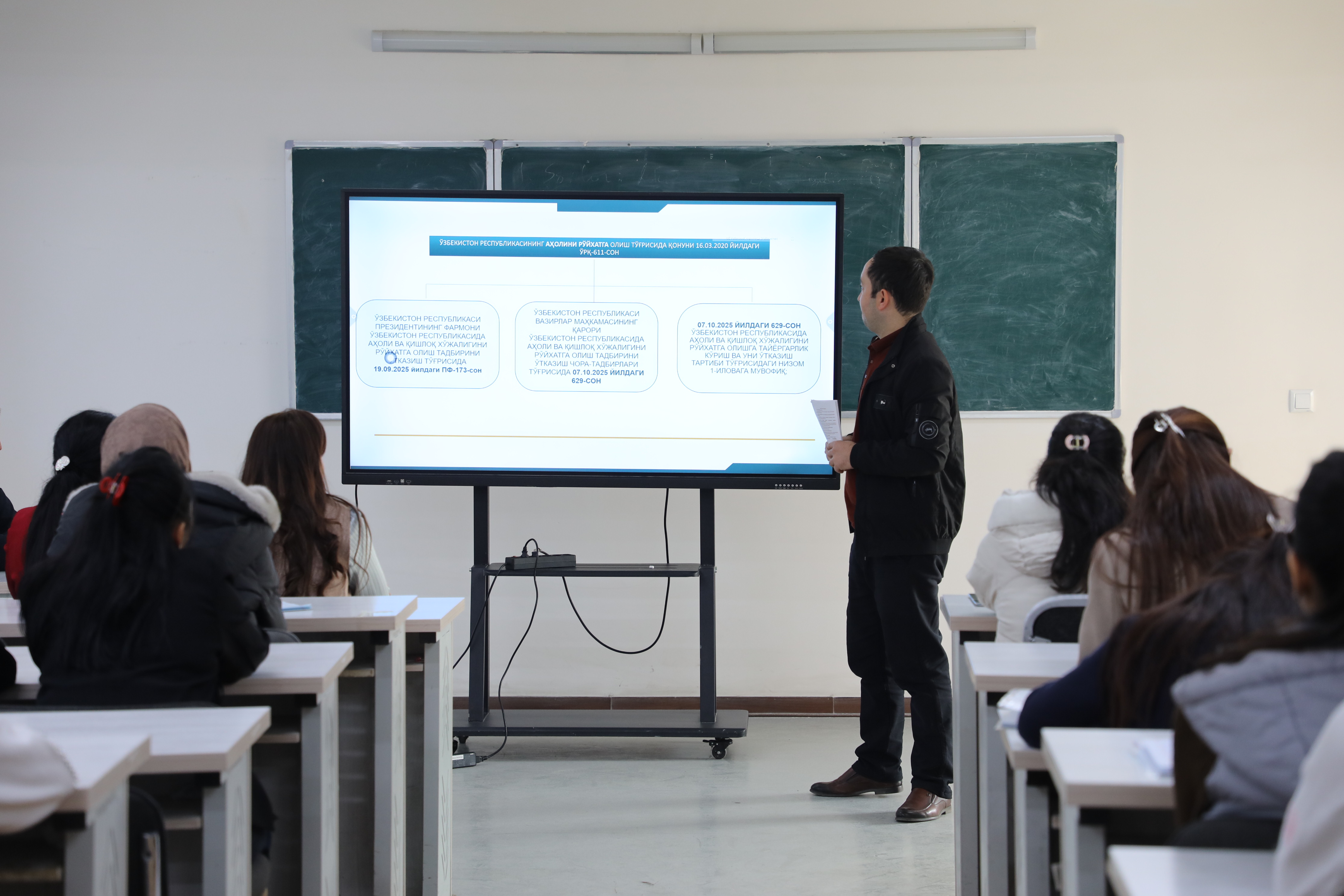 Joriy yilning 3-dekabr kuni Jizzax davlat universitetining o‘qituvchi va talabalari ishtirokida aholini va qishloq xo‘jaligini ro‘yxatga olish tadbirini o‘tkazish yuzasidan o‘quv seminari tashkil etildi. Seminarda Jizzax viloyati statistika boshqarmasi mutaxassislari so‘zga chiqib, O‘zbekiston Respublikasi Prezidentining aholi va qishloq xo‘jaligini ro‘yxatga olish to‘g‘risidagi farmonining mohiyati va mazmuni yuzasidan ma’ruza qildilar. Ular xususan, aholining demografik va ijtimoiy-iqtisodiy xususiyatlari, yashash darajasi va farovonligi, qishloq xo‘jaligi holati, tarkibi hamda aholini ijtimoiy ahamiyatga molik asosiy turdagi qishloq xo‘jaligi mahsulotlari bilan ta’minlash istiqbollarini baholash tizimini yaratish uchun zarur ma’lumotlar bazalarini shakllantirish maqsadida O‘zbekistonda aholi va qishloq xo‘jaligini ro‘yxatga olish 2026-yil 15-yanvar holatiga ko‘ra, 2026-yil 15-yanvardan 28-fevralga qadar o‘tkazilishi, uning dastlabki 17 kuni internet orqali, keyingi bir oy mobaynida esa “mahalla yettiligi” ishtirokida uyma-uy yurib amalga oshirilishi, shuningdek, ro‘yxatga olish jarayonlari oddiy va shaffof tarzda tashkil etilishi, savollarning soni 71 tati tashkil etishi haqida so‘z yuritildi. Shu bilan birga, farmonda davlat organlari va tashkilotlari o‘z tizimida faoliyat yuritayotgan barcha xodimlarning census.stat.uz portali orqali ro‘yxatdan o‘tishi, oliy ta’lim, fan va innovatsiyalar boshqarmasi shahar va tumandagi barcha o‘rta maxsus va kasbiy ta’lim tashkilotlari, shuningdek, davlat, nodavlat va xorijiy oliy ta’lim tashkilotlari va ularning filiallarida tahsil olayotgan talabalarning ro‘yxatdan o‘tishi hamda qishloq xo‘jaligi boshqarmasi, Jizzax viloyati fermerlari kengashi, shahar va tuman hokimliklari bilan birgalikda fermer xo‘jaliklari, yuridik shaxs tashkil etgan dehqon xo‘jaliklari, qishloq xo‘jaligi faoliyatini amalga oshiruvchi tashkilotlar va asosiy faoliyati qishloq xo‘jaligi bo‘lmagan qishloq xo‘jaligi yerlaridan foydalanayotgan korxona va tashkilotlarning internet tarmog‘i orqali ro‘yxatdan o‘tishi belgilab qo‘yilganligi e’tirof etildi. Shundan so‘ng, ro‘yxatdan o‘tish qoidalari, savolnomadagi shakllarini to‘ldirish tartiblari haqida taqdimot yordamida ishtirokchilarga tushuntirildi.